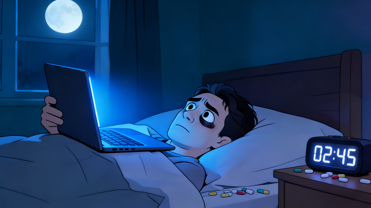 慢性失眠可能引發 免疫力下降、代謝紊亂、記憶力減退、情緒低落,形成「失眠—藍光暴露—更差睡眠」的惡性循環。