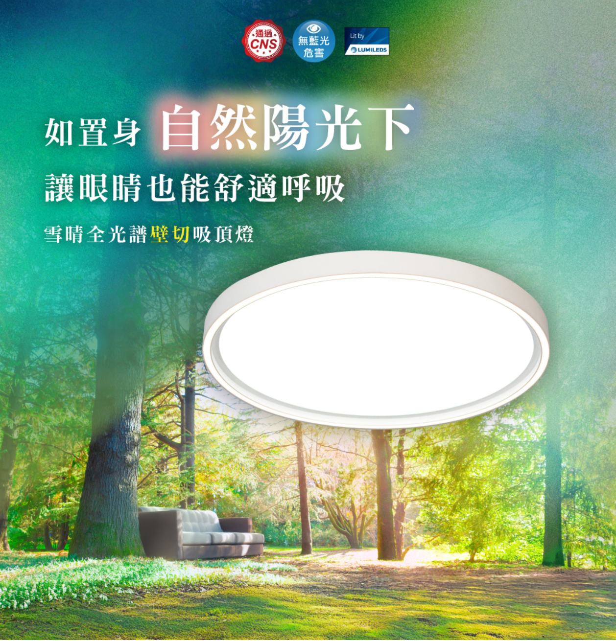 雪晴全光譜壁切 LED 吸頂燈|調光調色|舒適多功能照明