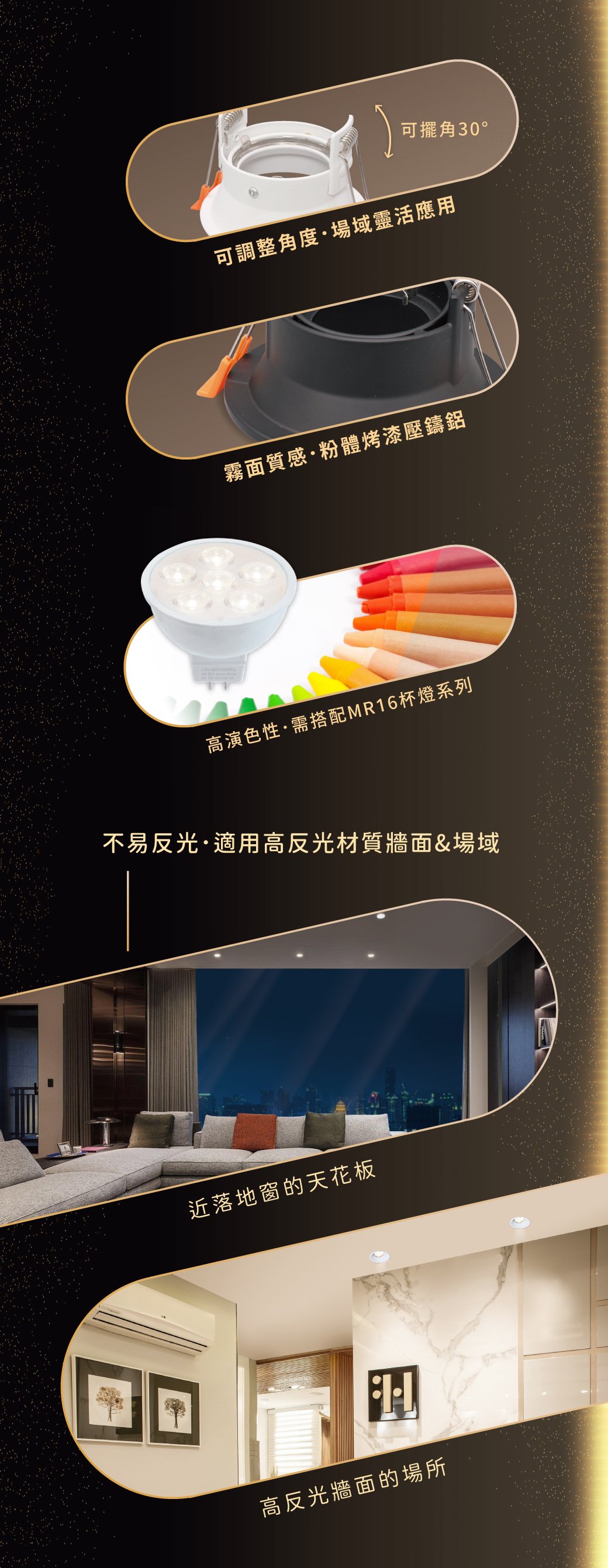 MR 替換式可調角度崁燈|開孔 9.5CM|聚光靈活照明