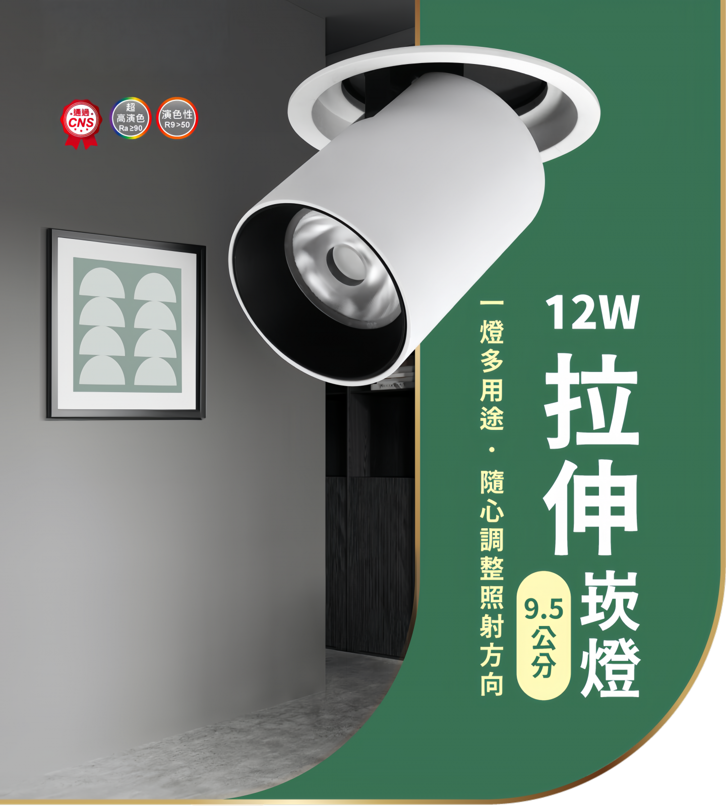 拉伸式 LED 崁燈|開孔 9.5CM|可調角度照明