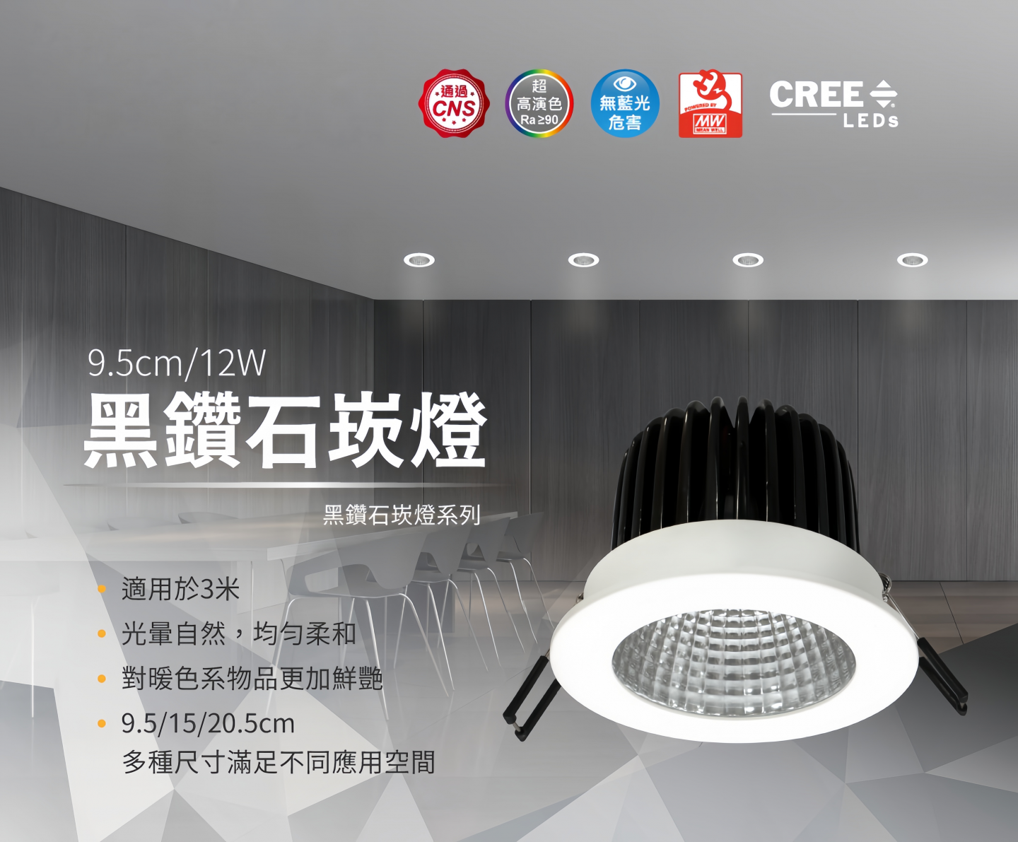 黑鑽石 LED 崁燈|防眩設計|高質感重點照明