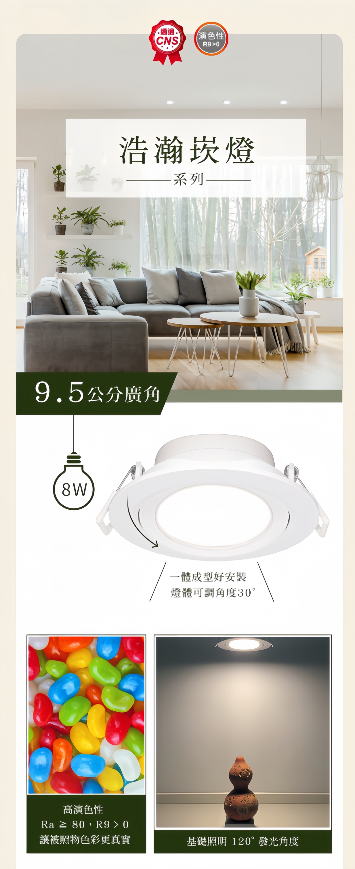 廣角平面型 LED 崁燈|均勻照明|現代室內燈具