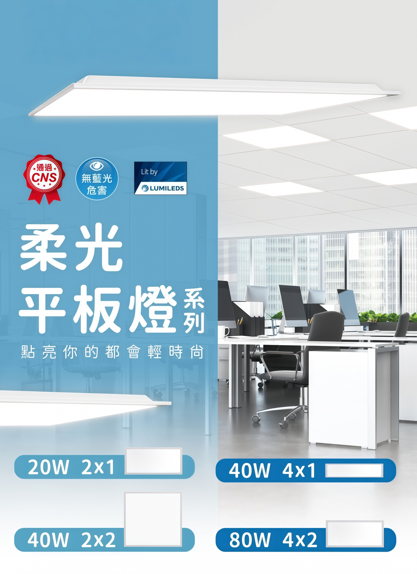 柔光 LED 平板燈|均勻柔光|節能吸頂照明